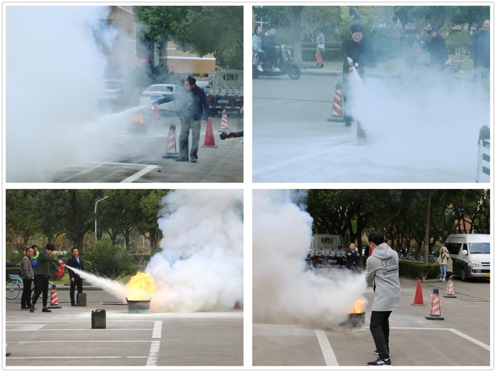组织了一次灭火器使用讲解及灭火实战演练活动。演练在信息楼前广场举行,有近百余名师生共同参与。学院党政领导参与了本次演练,并发言让学生意识到开展灭火实战演练的重要性和必要性。演练前,首先由保卫处干部徐老师具体为学生讲解了逃生知识和技巧,从灭火器的类型、灭火器的操作方法、灭火器操作注意事项等进行了详细的讲解。实战演练时,师生员工和学生代表面对熊熊大火,拿起灭火器按照讲述的操作要领详细认真的进行灭火练习,人人做到动作到位,成功灭火。