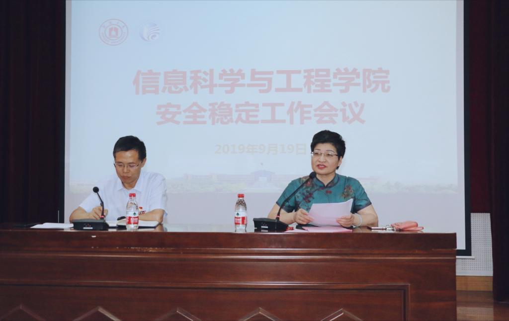 在五楼报告厅专题召开安全稳定工作会议, 会议有院党委书记骆巧凤主持,骆巧凤首先传达学习了学校关于新学期安全稳定工作会议精神。结合学院实际,制定的学院的安全稳定工作方案进行了解读,并对学院进一步做好安全稳定工作进行了全面部署。