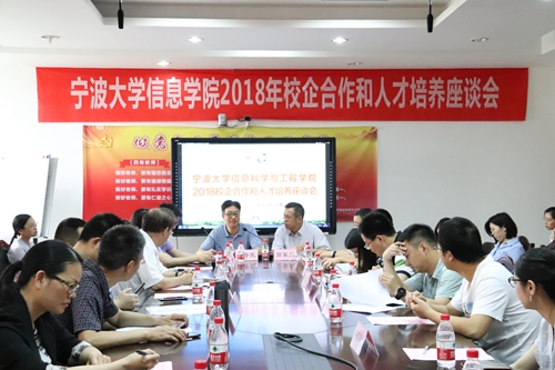 在信息楼313会议室召开了2018年校庆合作和人才培养座谈会,包括中国联通、上汽大众、TCL通信、浙江大华、均胜集团、方太集团、中芯宁波、东软集团等公司在内的40家合作企业(其中包括华和万润、东源音响、浙江悦讯等19家校友企业)代表参与了此次座谈,学院相关院领导和各系系主任参与了活动。
