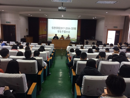 3月5日中午,成人漫画 在信息楼五楼报告厅召开了本学期学生干部大会,学院院长助理严水英、学工办主任孙文静、团委书记汪小静以及各学生组织主要负责人,各班班干部100余人参与了会议。 本次会议是新学期的第一次大会,首先就开学初的安全稳定、诚信补考、寝室卫生大扫除等相关工作了做了布置,随后也对本学期的学生工作思路和重点做了沟通与传达,为本学期各项工作的有序开展奠定了基础。