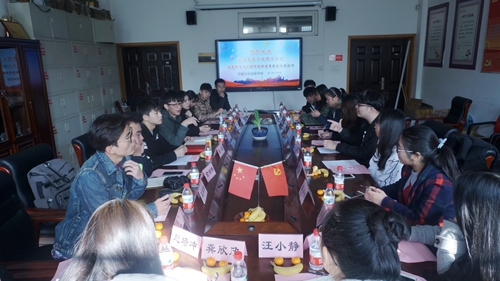 113会议室交流会双方进行交流座谈会。议程第一项,双方与会老师发表讲话,浙江大学宁波理工学院成人漫画