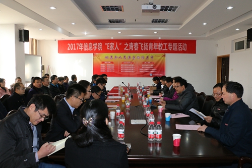 在313会议室举办“E家人”之青春飞扬青年教工专题活动。活动由院党委书记林奇凯主持。校宣传部副部长张芝萍、校人事处副处长余怡春以及成人漫画