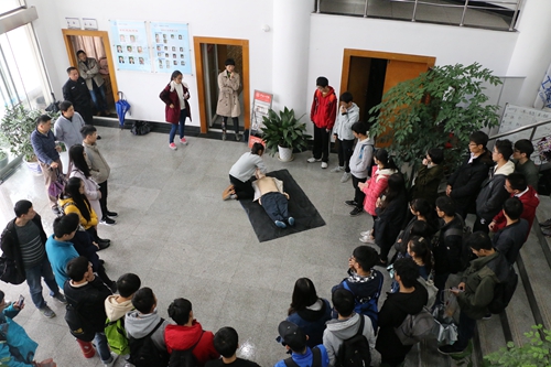 21日中午,在信息楼大厅举行了一场别开生面的心肺复苏模拟演练,我们知道,心搏骤停一旦发生,如得不到即刻及时地抢救复苏,4~6分钟后会造成患者脑和其他人体重要器官组织的不可逆的损害,因此心肺复苏必须在现场立即进行。医学院青年志愿者详细向师生介绍心肺复苏术的整个过程,并配有假人边讲边示范如何进行胸外按压和如何进行人工呼吸,现场还邀请了一名同学实际操练,医疗急救的知识的讲解引起了在场师生的浓厚的兴趣。