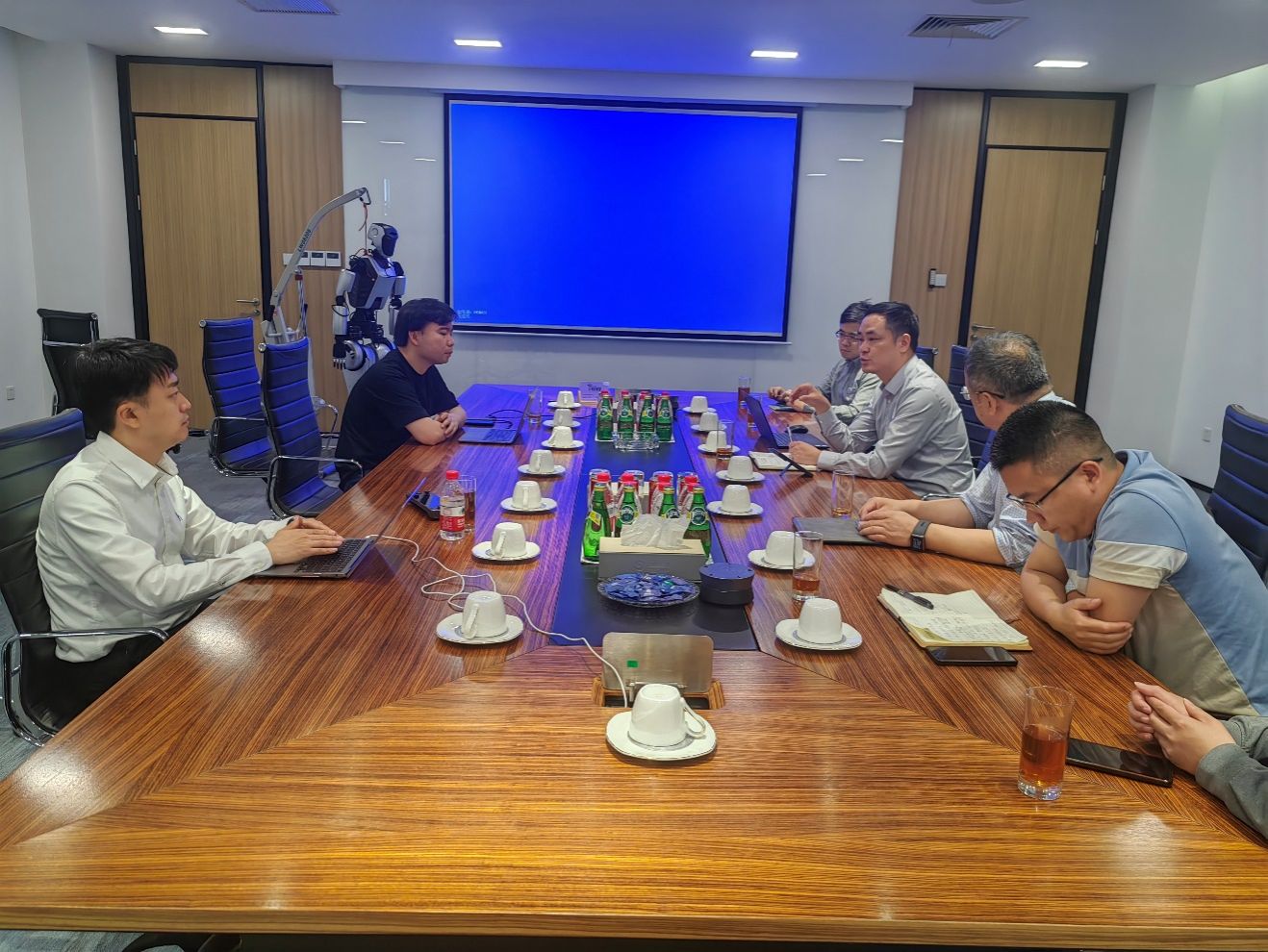 会上沈祥院长介绍了学院基本情况,就与均胜电子校企合作相关事宜进行了深入交流。沈祥院长提出聚焦人形机器人研究,发挥双方优势,建立校企联合实验室,以联合实验室为载体,在项目合作、青年教师发展、本科生与研究生联合培养等方面深度合作,促进学生留甬发展与产学研落地。