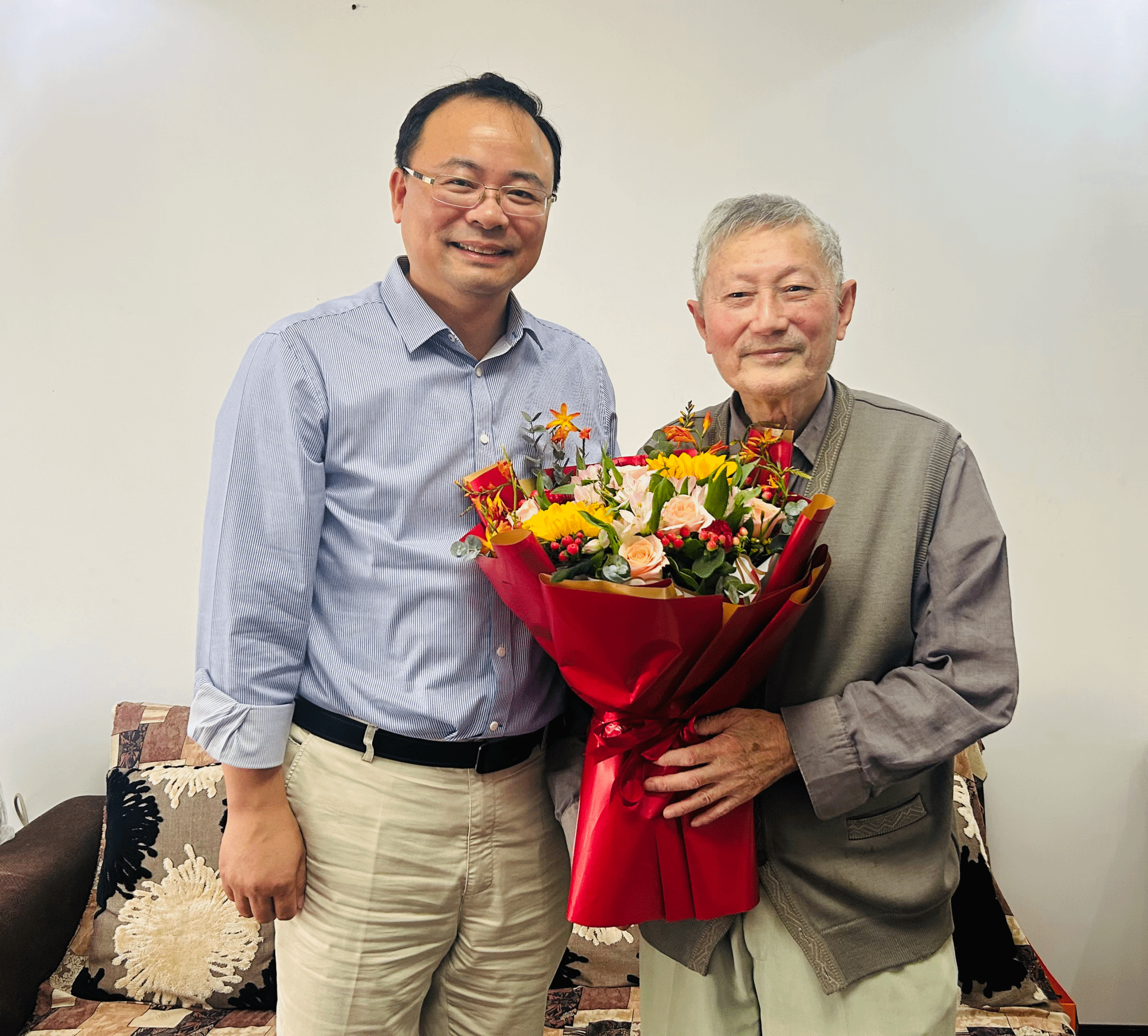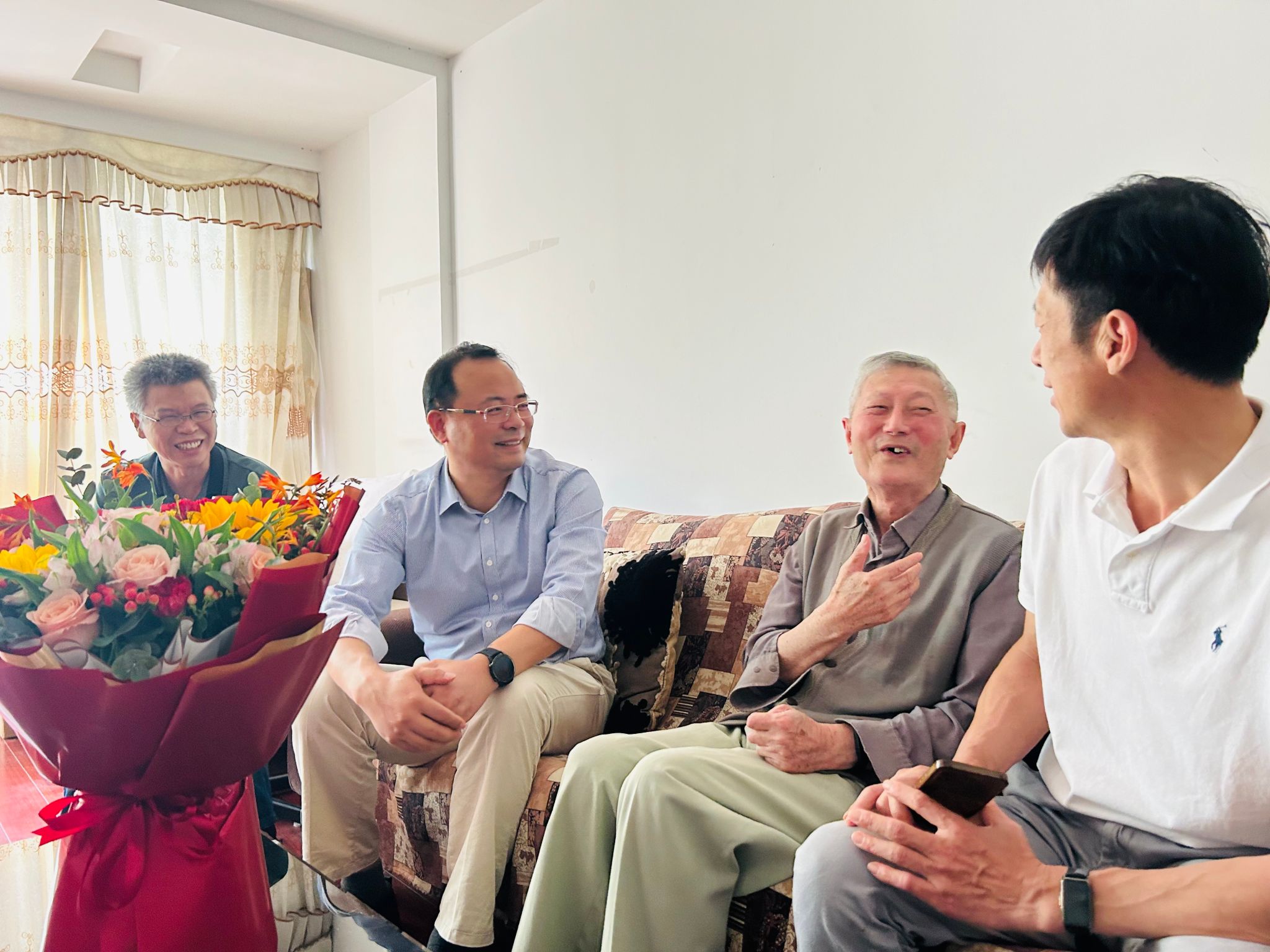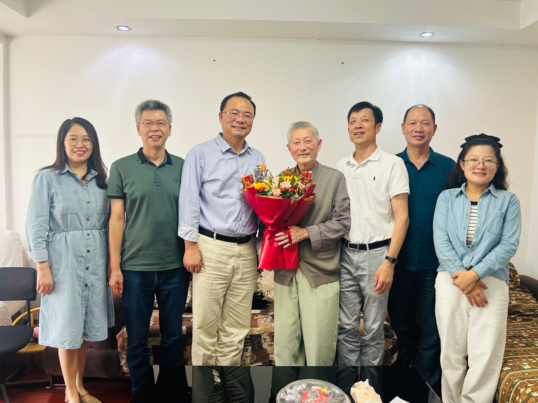 党委书记王伦耀一行来到李力行教授家中,看望退休老人,向老人送上节日问候和生日问候,祝福老人健康长寿、生活幸福。