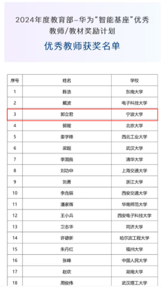 据悉,为了深入推进教育部-华为“智能基座”产教融合协同育人基地(以下称“智能基座”)项目建设,华为支持设立了“教育部-华为‘智能基座’优秀教师奖励计划”,表彰在“智能基座”项目中表现突出的老师。2021年至2023年,累计共评选出60位“智能基座”优秀教师。