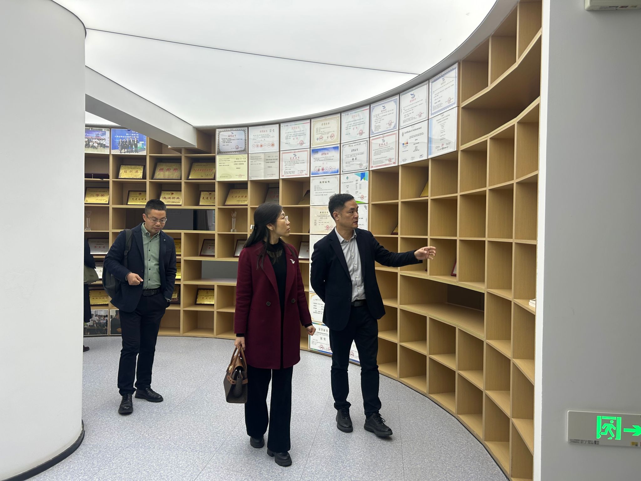会后,莫晨宇一行参观了学院的教育部多媒体通信中心和创新创业长廊的建设情况。
