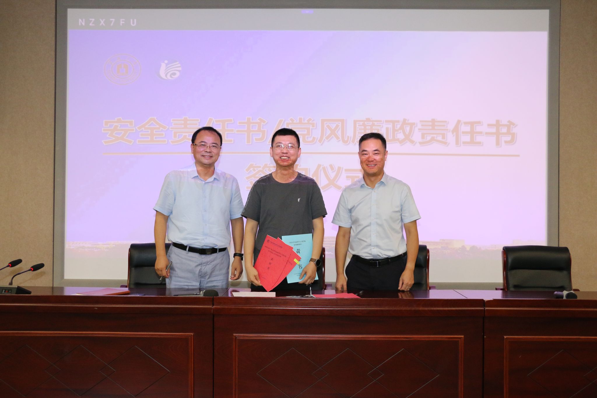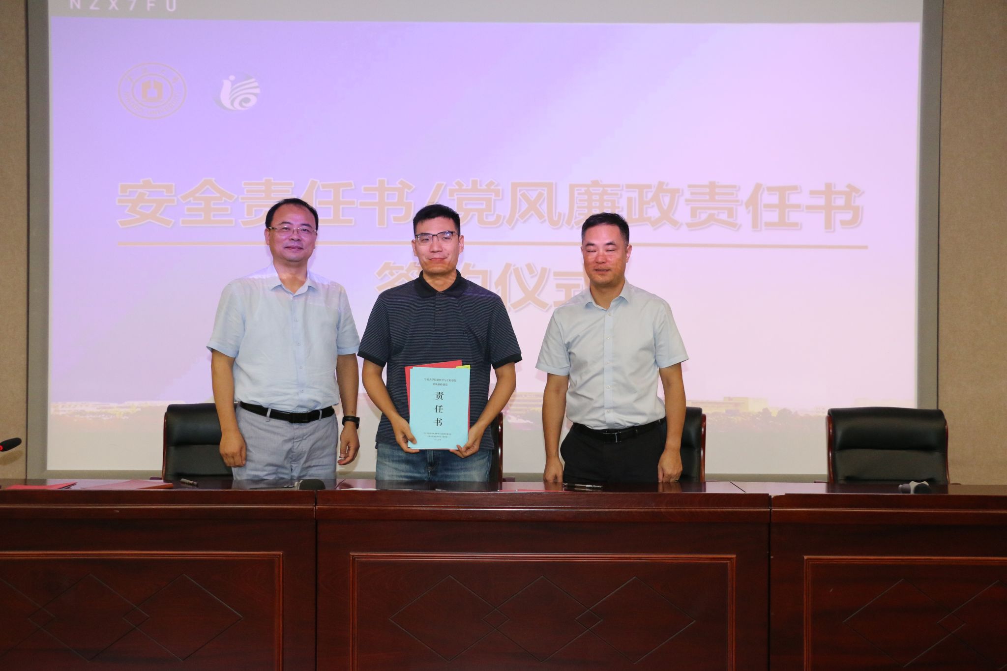 会议第四项议程由各分管领导布置学期初相关工作,围绕教学安排、科研任务、学生管理等方面提出了具体要求。沈祥院长做了上半年工作业绩回顾,盘点了上半年各项工作取得的成绩,并动员全体教职工从地方服务角度出发,主动谋划、善于思考,将科研工作与国家重大需求及地方经济发展需求相结合。最后,各基层组织负责人现场签订了安全责任书和党风廉政责任书,进一步强化了责任意识,明确了工作目标。