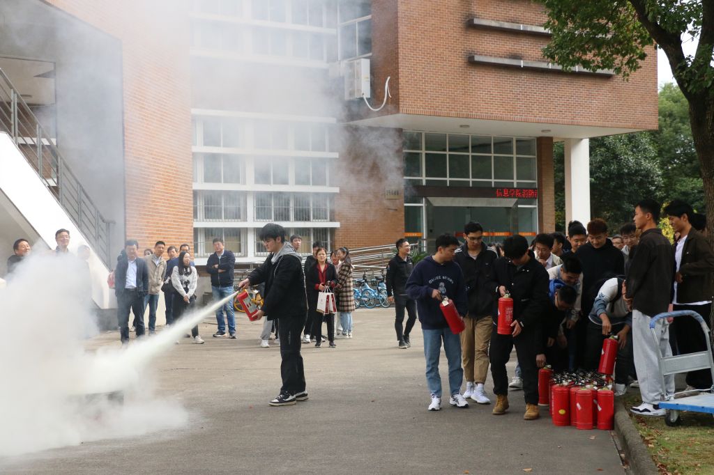 组织了一次灭火器使用讲解及灭火实战演练活动。演练在北区2号楼实验室楼前广场举行,有50余名师生共同参与。学院党政领导参与了本次演练,并发言让学生意识到开展灭火实战演练的重要性和必要性。