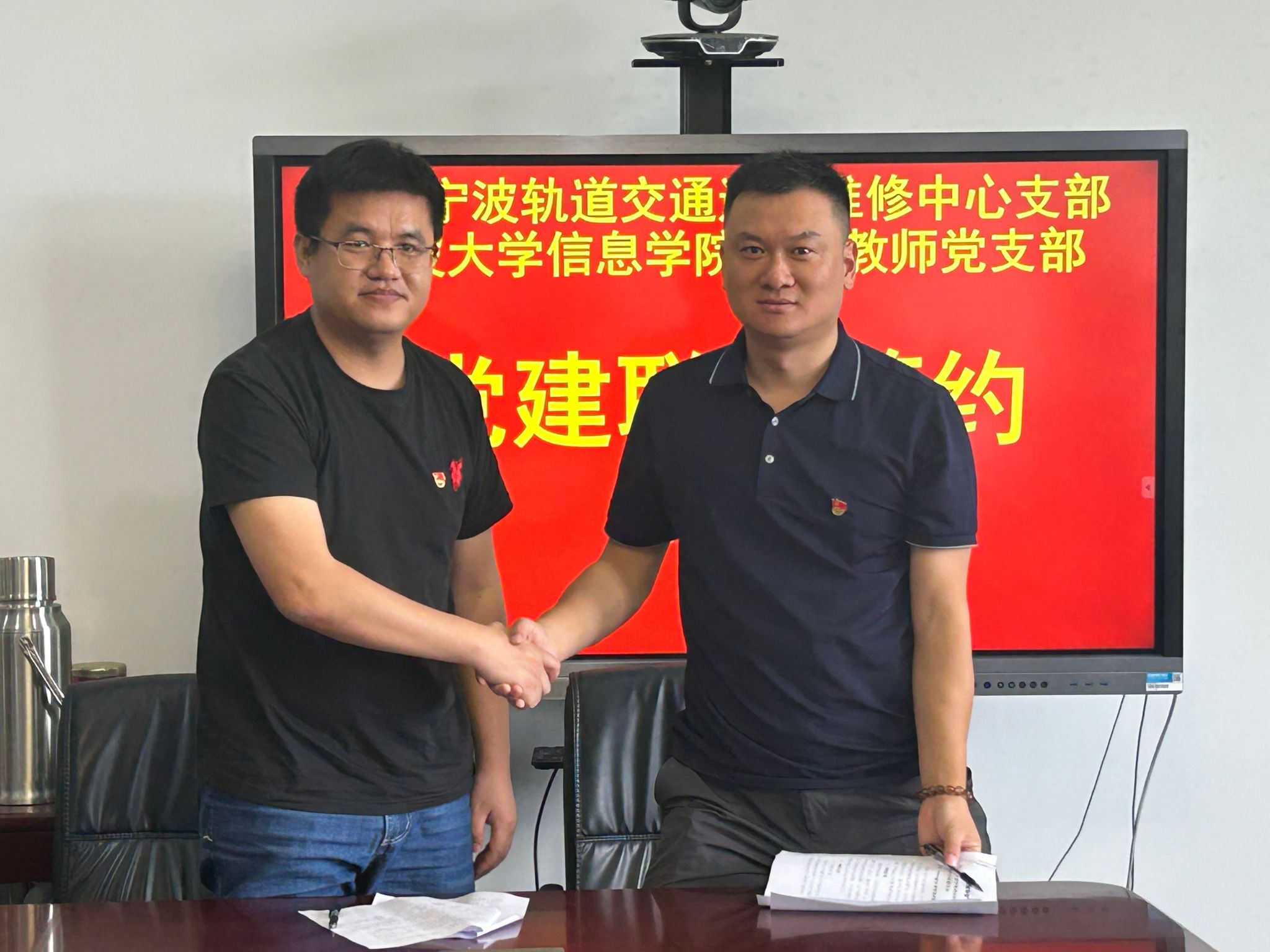 通信教师党支部和宁波市轨道交通集团有限公司智慧运营分公司通号维修中心党支部举行“校企”党建联建合作签约仪式。