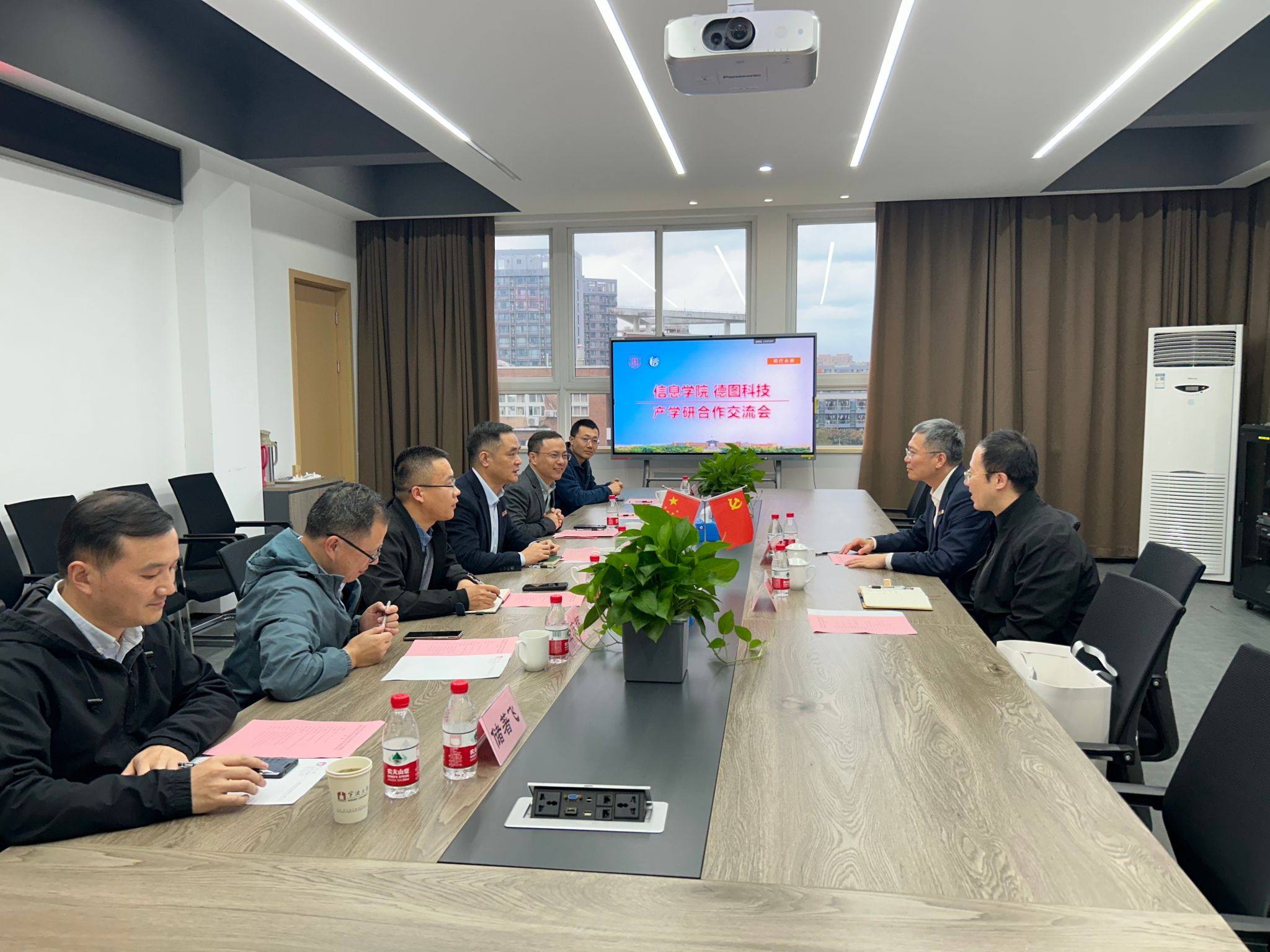 与宁波德图科技产学研合作平台座谈交流会在杨咏曼楼606会议室进行。相关学位点负责人、系所负责人以及教师代表参加了座谈交流,双方就后期师生人才的联合培养、产学研课程体系共建、学科和科研工作的深入合作展开了详细的讨论,达成了一系列有实质性建设意义的框架合作意向。